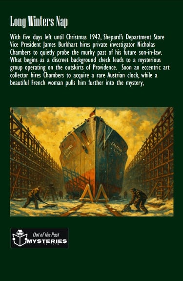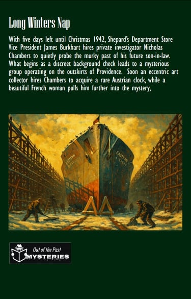 With only five days until Christmas 1942, Shepard's Department Store Vice President James Burkhart hires Private Investigator Nicholas Chambers to look into the murky past of his future son-in-law. The mystery deepens when an eccentric art collector hires Chambers to purchase a rare Austrian clock at auction. A beautiful French woman and a mysterious group operating on the outskirts of Providence draw Chambers deeper into the mystery, and open his eyes to an imminent threat facing his way of life.
